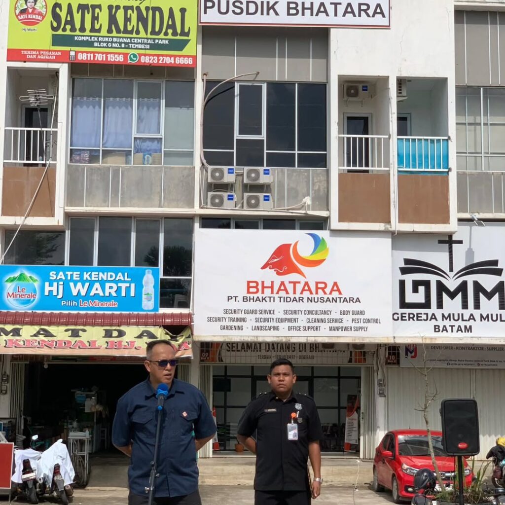 Pada Jumat, 17 Oktober 2025 kemarin, PT. Bhakti Tidar Nusantara melaksanakan Apel Bulanan yang dilaksanakan secara rutin setiap bulan. Kesempatan bulan ini bertindak selaku Petugas adalah dari Unit Kerja Shimano Batam yang berlokasi di Panbil. Apel dipimpin langsung oleh Direktur Utama PT. Bhakti Tidar Nusantara, Dwifung Wirajaya Saputra, CCPS. Turut hadir mendampingi Dwifung yakni Direktur Operasi PT. Bhakti Tidar Nusantara, Ryan Istiyanto, SH. MH. CLA. C.Med. CATS. CCPS. CCSMS. CCIP. CT. CPNLP. CA. CPLA yang juga berprofesi sebagai Advocat/Lawyer di Kota Batam.